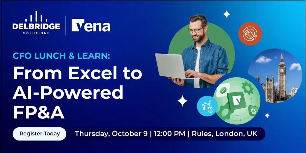 An introduction to Delbridge and Vena Solutions and opportunity to hear about the latest FP&A trends and best practices.